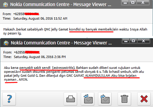 Testimoni Konsumen Yang Telah Mengkonsumsi Obat Herbal QnC Jelly Gamat Untuk Mencegah Dan Mengobati Penyakit :